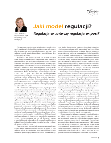 Jaki model regulacji? Anna Bednarska Departament Taryf Urz¹d Regulacji Energetyki Regulacja ex ante czy regulacja ex post? Od pewnego czasu jesteœmy œwiadkami coraz to liczniejszych publicznych dyskusji i polemik dotycz¹cych zmiany obecnie stosowanej metody regulacji ex ante – przyjêtej i uzasadnionej metody regulacji dzia³alnoœci przedsiêbiorstw dystrybucyjnych w Polsce. Regulacja ex ante, która w gruncie rzeczy oznacza wydawanie decyzji zatwierdzaj¹cych ceny i stawki op³at w taryfach przedsiêbiorstw dystrybucyjnych i wprowadzanie ich do stosowania w przysz³ym okresie, prowadzona jest od samego pocz¹tku procesu ustanawiania taryf dla przedsiêbiorstw dystrybucyjnych w Polsce, a swoje podstawy prawne znajduje w aktualnie obowi¹zuj¹cych przepisach legislacyjnych. Zgodnie bowiem z art. 47 ust. 1 i 2 ustawy – Prawo energetyczne (DzU z 2003 r. Nr 153, poz. 1504 z póŸn. zm.) przedsiêbiorstwa energetyczne posiadaj¹ce koncesje ustalaj¹ taryfy dla paliw gazowych i energii elektrycznej, które podlegaj¹ zatwierdzeniu przez Prezesa URE oraz proponuj¹ okres ich obowi¹zywania. Przedsiêbiorstwa energetyczne posiadaj¹ce koncesje przedk³adaj¹ taryfy do zatwierdzenia z w³asnej inicjatywy lub na ¿¹danie Prezesa URE. W odró¿nieniu od regulacji ex ante, regulacja ex post umo¿liwia przedsiêbiorstwom samoistne kszta³towanie taryf i wprowadzanie ich do stosowania bez obowi¹zku przedstawiania ich do akceptacji Prezesowi URE. Rola regulatora w modelu regulacji ex post sprowadzona zostaje jedynie do funkcji kontrolnych po okresie stosowania cen i stawek op³at, wprowadzonych przez przedsiêbiorstwo dystrybucyjne jako obowi¹zuj¹cych dla odbiorców energii elektrycznej. Zatem nie ulega w¹tpliwoœci, ¿e model regulacji ex post bêdzie pozytywnie postrzegany w sektorze przedsiêbiorstw dystrybucyjnych, bowiem daje on ca³kowit¹ swobodê ekonomiczn¹ w dzia³alnoœci koncesjonowanej, swobodê podejmowania decyzji oraz kszta³towania polityki cenowej, zgodnie z za³o¿onymi priorytetami zarz¹dów przedsiêbiorstw. Nale¿y równie¿ mieæ na wzglêdzie, ¿e ¿aden organ czy podmiot zewnêtrzny, w tym równie¿ regulator, nie ma tak dog³êbnej wiedzy o przedsiêbiorstwie, o jego ukrytych rezerwach, mo¿liwoœciach redukcji kosztów i maksymalizacji zysków, jak tylko i wy³¹cznie samo przedsiêbiorstwo. Zwa¿ywszy na tê powszechnie akceptowan¹ prawdê, postulaty zmiany sposobu regulacji mog³yby uchodziæ za uzasadnione, gdyby nie subtelny fakt, jakim jest dzia³alnoœæ przedsiêbiorstw dystrybucyjnych na rynku wysoce niekonkurencyj- nym. Spó³ki dystrybucyjne w zakresie dzia³alnoœci dystrybucyjnej s¹ monopolistami, a ich operacyjnoœæ nie jest poddana wystarczaj¹cym mechanizmom konkurencyjnym ze strony rynku, tak jak ma to miejsce w stosunku do podmiotów dzia³aj¹cych na rynkach konkurencyjnych. Co za tym stoi, bez tzw. niewidzialnej rêki rynku przedsiêbiorstwa dystrybucyjne zamiast redukowaæ koszty, zwiêkszaæ swoj¹ konkurencyjnoœæ, zabiegaæ o wysok¹ jakoœæ obs³ugi klienta przy jak najbardziej optymalnych kosztach jego obs³ugi, wykorzystywa³yby uprzywilejowan¹ pozycjê wobec odbiorców, zmuszaj¹c ich do pokrywania w rachunkach za energiê elektryczn¹ wszelkich nieefektywnoœci powi¹zanych z ich dzia³alnoœci¹. Wobec tego w celu ochrony interesów odbiorców, pozbawionych czêstokroæ mo¿liwoœci dokonywania wyborów, tam gdzie zastosowanie mechanizmów rynkowych jest niemo¿liwe, pojawiaj¹ siê dzia³ania regulacyjne w procesie zatwierdzania cen i stawek op³at zawartych w taryfach przedsiêbiorstw dystrybucyjnych. Prowadz¹c regulacjê ex ante regulator, stara siê kreowaæ lub substytuowaæ warunki i narzêdzia do tworzenia rynku konkurencyjnego w przysz³oœci – dla dobra konsumentów, ale równie¿ i przedsiêbiorstw energetycznych. Podstawowa zasada, któr¹ regulator kieruje siê w procesie zatwierdzania taryf ma na celu jednoczesne równowa¿enie interesów przedsiêbiorstw energetycznych i odbiorców. To uwzglêdnianie interesów przedsiêbiorstw dystrybucyjnych przejawia siê chocia¿by w wykorzystywaniu przez regulatora metod benchmarkingowych i regulacji bodŸcowej opartej na formule Price/Revenue Cap. Pocz¹wszy od roku 2002 zatwierdzanie taryf dla przedsiêbiorstw sieciowych odbywa siê na bazie analiz porównawczych oraz modeli stworzonych do oceny kosztów operacyjnych, strat sieciowych i nak³adów inwestycyjnych, równie¿ przy wspó³pracy i zaanga¿owaniu przedsiêbiorstw dystrybucyjnych w tym zakresie. Zastosowanie ju¿ 4 lata temu modelu regulacji bodŸcowej w Polsce nale¿y postrzegaæ w aspekcie osi¹gniêæ i sukcesów w dziedzinie regulacji, w odniesieniu do stopnia zaawansowania rozwi¹zañ regulacyjnych w pañstwach Europy Œrodkowowschodniej. Ponadto zastosowane przez URE metody w sposób istotny przewy¿szaj¹ tak¿e metody wypracowane przez niektórych regulatorów z Europy Zachodniej. A zatem nie bêdzie przesad¹ stwierdzenie, ¿e poziom wypracowanych rozwi¹zañ regulacyjnych w Polsce nale¿y traktowaæ w kategoriach dziedzictwa, którego nie wolno nam zaprzepaœciæ. CZERWIEC 2006 7 Stosowana przez regulatora pu³apowa formu³a przychodu regulowanego w dystrybucji pozwala na pokrywania uzasadnionych w³asnych i przeniesionych kosztów prowadzenia tej dzia³alnoœci przez przedsiêbiorstwo sieciowe. S¹ to takie tytu³y, jak koszty zakupu us³ug przesy³owych od PSE-Operator SA, koszty w³asne operacyjne przesy³ania i dystrybucji, amortyzacja, podatki i op³aty, koszty ró¿nicy bilansowej, a tak¿e inne dodatkowo uzasadnione pozycje kosztowe. Ponadto bardzo istotnym elementem, który znajduje pokrycie w taryfach zatwierdzanych przez regulatora jest z roku na rok rosn¹ca kwota zwrotu z zaanga¿owanego kapita³u, która pozostaje w przedsiêbiorstwie jako nadwy¿ka finansowa. Przyk³adowo w roku 2005 udzia³ zwrotu z kapita³u w strukturze przychodu regulowanego wynosi³ a¿ 6 proc. To szerokie zastoso