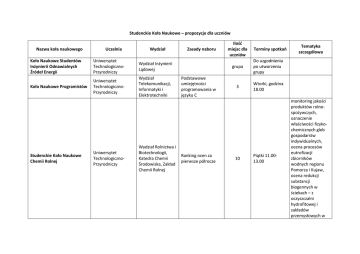 Studenckie Koła Naukowe – propozycje dla uczniów Nazwa koła