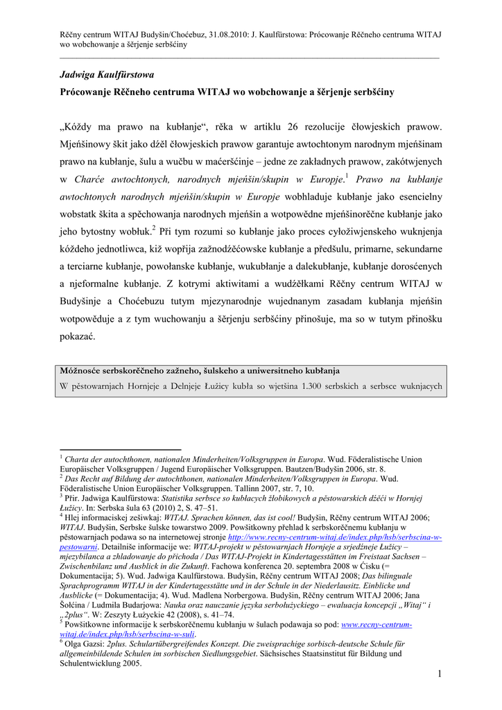 1 Jadwiga Kaulfürstowa Prócowanje Rěčneho centruma WITAJ wo