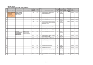 Załącznik 2 do SZOOP Tabela wskaźników produktu dla działań i poddziałań Lp. Nazwa Osi Priorytetowej Nazwa Działania Nazwa Poddziałania Lp. Nazwa wskaźnika produktu Jednostka miary Kategoria regionu Wartość pośrednia Szacowana wartość docelowa (2023) Źródło danych Typ wskaźnika 1.1 PI 1a 1. Liczba przedsiębiorstw współpracujących z ośrodkami badawczymi (CI26) szt. Słabiej rozwinięty - SL 2014 z WLWK 2. 1.1 PI 1a 2. zł SL 2014 z WLWK 1.1 PI 1a 3. SL 2014 z WLWK 4. 1.1 PI 1a 4. Inwestycje prywatne uzupełniające wsparcie publiczne w projekty w zakresie innowacji lub badań i rozwoju (CI27) Słabiej rozwinięty Słabiej rozwinięty Słabiej rozwinięty - 3. Nakłady inwestycyjne na zakup aparatury naukowo-badawczej Liczba wspartych laboratoriów badawczych - 33 896 373 SL 2014 z WLWK 5. 1.1 PI 1a 5. Liczba jednostek naukowych ponoszących nakłady inwestycyjne na działalność B+R szt. Słabiej rozwinięty - 4 SL 2014 z WLWK 6. 1.1 PI 1a 6. Liczba naukowców pracujących w ulepszonych obiektach infrastruktury badawczej (CI25) EPC Słabiej rozwinięty 40 SL2014 z WLWK 1.2.1 PI 1b 1. Liczba wspartych laboratoriów badawczych szt. Słabiej rozwinięty SL 2014 z WLWK 1.2.1 PI 1b 2. szt. z WLWK 1.2.1 PI 1b 3. - SL 2014 z WLWK 9. 1.2.1 PI 1b 4. Słabiej rozwinięty Słabiej rozwinięty Słabiej rozwinięty SL 2014 8. Liczba przedsiębiorstw wspartych w zakresie doradztwa specjalistycznego Nakłady inwestycyjne na zakup aparatury naukowo-badawczej Inwestycje prywatne uzupełniające wsparcie publiczne w projekty w zakresie innowacji lub badań i rozwoju (CI27) - SL 2014 z WLWK 10. 1.2.1 PI 1b 5. Liczba realizowanych projektów B+R szt. - SL 2014 z WLWK 11. 1.2.1 PI 1b 6. Liczba realizowanych prac B+R szt. - SL 2014 z WLWK 12. 1.2.1 PI 1b 7. Liczba przedsiębiorstw otrzymujących wsparcie (CI1) szt. 13. 1.2.1 PI 1b 8. Liczba przedsiębiorstw otrzymujących dotacje (CI2) szt. 1. 7. Nazwa osi priorytetowej: Działanie1.1. Publiczna 1 Wzmocnienie infrastruktura na rzecz innowacyjności badań i innowacji i konkurencyjności gospodarki regionu Nr Priorytet działania/P Inwestycyjny oddziałania (PI) Działanie 1.2. Promowanie inwestycji przedsiębiorstw w badania i innowacje Poddziałanie 1.2.1 Wsparcie procesów badawczo-rozwojowych Strona 1 szt. zł zł zł Słabiej rozwinięty Słabiej rozwinięty Słabiej rozwinięty Słabiej rozwinięty - 39 187 SL 2014 z WLWK - 187 SL 2014 z WLWK Lp. Nazwa Osi Priorytetowej Nazwa Działania Nazwa Poddziałania Nr Priorytet działania/P Inwestycyjny oddziałania (PI) Lp. Nazwa wskaźnika produktu Źródło danych Typ wskaźnika - Szacowana wartość docelowa (2023) 120 317 774 SL 2014 z WLWK 1 821 SL 2014 z WLWK Jednostka miary Kategoria regionu Wartość pośrednia zł Słabiej rozwinięty 14. 1.2.1 PI 1b 9. Inwestycje prywatne uzupełniające wsparcie publiczne dla przedsiębiorstw (dotacje) (CI6) 15. 1.2.1 PI 1b 10. Liczba przedsiębiorstw współpracujących z ośrodkami badawczymi (CI26) szt. Słabiej rozwinięty - 16. 1.2.1. PI 1b 11. Liczba przedsiębiorstw ponoszących nakłady inwestycyjne na działalność B+R szt. Słabiej rozwinięty - SL 2014 z WLWK 17. 1.2.1 PI 1b 12. szt. SL 2014 WLWK 1.2.1 PI 1b 13. Słabiej rozwinięty Słabiej rozwinięty - 18. Liczba przedsiębiorstw wspartych w zakresie prowadzenia prac B+R Liczba naukowców pracujących w ulepszonych obiektach infrastruktury badawczej (CI25) - SL2014 z WLWK 1.2.2 PI 1b 1. Liczba przedsiębiorstw otrzymujących wsparcie (CI1) szt. Słabiej rozwinięty 39 SL 2014 z WLWK 20. 1.2.2 PI 1b 2. Liczba wspartych funduszy pożyczkowych szt. - SL 2014 z WLWK 21. 1.2.2. PI 1b 3. Liczba przedsiębiorstw otrzymujących wsparcie finansowe inne niż dotacje (CI3) szt. Słabiej rozwinięty Słabiej rozwinięty - SL 2014 z WLWK 22. 1.2.2 PI 1b 4. szt. SL 2014 z WLWK 1.2.2 PI 1b 5. - SL 2014 z WLWK 24. 1.2.2 PI 1b 6. Wartość udzielonych pożyczek w części UE zł - SL 2014 z WLWK 1.3.1 PI 1b 1. Liczba wspartych laboratoriów badawczych szt. Słabiej rozwinięty Słabiej rozwinięty Słabiej rozwinięty Słabiej rozwinięty - 23. Liczba ostatecznych odbiorców wspartych przez fundusze pożyczkowe Wartość udzielonych pożyczek ogółem - SL 2014 z WLWK 1.3.1 PI 1b 2. zł SL 2014 z WLWK PI 1b 3. SL 2014 z WLWK 27. 1.3.1. PI 1b 4. Słabiej rozwinięty Słabiej rozwinięty Słabiej rozwinięty - 1.3.1. Nakłady inwestycyjne na zakup aparatury naukowo-badawczej Liczba przedsiębiorstw wspartych w zakresie doradztwa specjalistycznego Liczba przedsiębiorstw ponoszących nakłady inwestycyjne na działalność B+R - SL 2014 z WLWK 28. 1.3.1 PI 1b 5. Słabiej rozwinięty - SL 2014 z WLWK Poddziałanie 1.2.2 Wsparcie procesów wdrożeniowych 19. 25. 26. Działanie 1.3 Wsparcie przedsiębiorczości akademickiej Poddziałanie 1.3.1 Wsparcie procesów badawczo-rozwojowych w przedsiębiorstwach akademickich Liczba przedsiębiorstw wspartych w zakresie prowadzenia prac B+R Strona 2 EPC zł szt. szt. szt. 187 Lp. Nazwa Osi Priorytetowej Nazwa Działania Nazwa Poddziałania Nr Priorytet działania/P Inwestycyjny oddziałania (PI) Lp. Nazwa wskaźnika produktu Jednostka miary Kategoria regionu Wartość pośrednia zł Słabiej rozwinięty Słabiej rozwinięty Słabiej rozwinięty Słabiej rozwinięty 29. 1.3.1 PI 1b 6. Inwestycje prywatne uzupełniające wsparcie publiczne w projekty w zakresie innowacji lub badań i rozwoju (CI27) 30. 1.3.1 PI 1b 7. Liczba realizowanych projektów B+R szt. 31. 1.3.1 PI 1b 8. Liczba realizowanych prac B+R szt. 32. 1.3.1 PI 1b 9. Liczba przedsiębiorstw otrzymujących wsparcie (CI1) szt. 33. 1.3.1 PI 1b 10. szt. 34. 1.3.1 PI 1b 11. Liczba przedsiębiorstw otrzymujących dotacje (CI2) Inwestycje prywatne uzupełniające wsparcie publiczne dla przedsiębiorstw (dotacje) (CI6) 35. 1.3.1 PI 1b 12. Liczba przedsiębiorstw współpracujących z ośrodkami badawczymi (CI26) 36. 1.3.1 PI 1b 13. 1.3.2 PI 1b 38. 1.3.2 39. Poddziałanie 1.3.2 Wsparcie procesów wdrożeniowy
