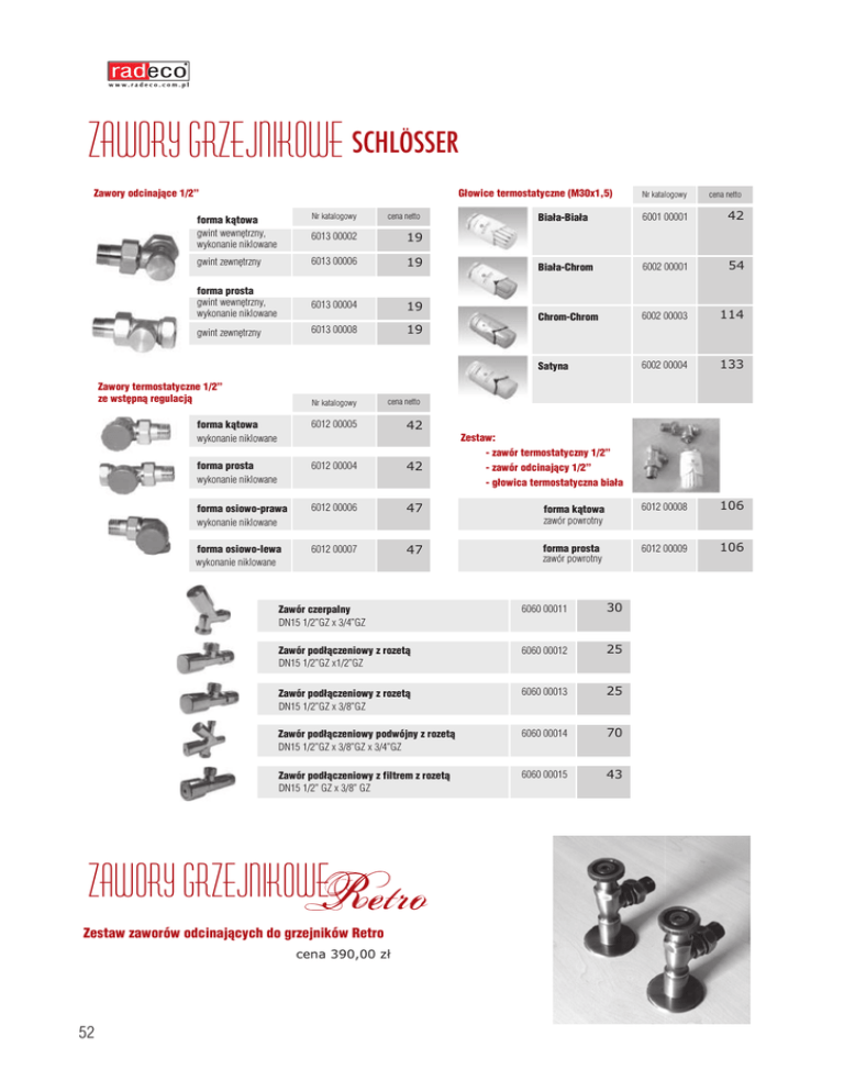 Cennik Radeco - zawory Schlosser 2012