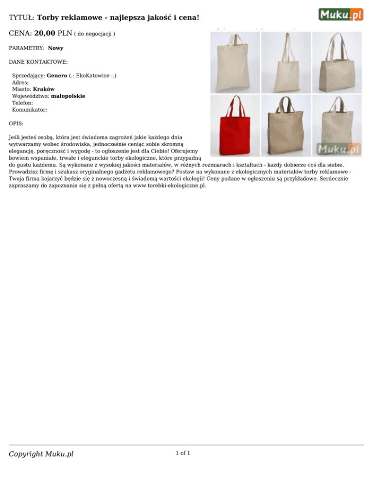 Copyright Muku.pl TYTUŁ: Torby reklamowe