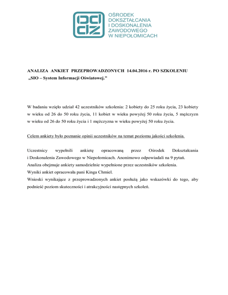 ANALIZA ANKIET PRZEPROWADZONYCH 14.04.2016 r