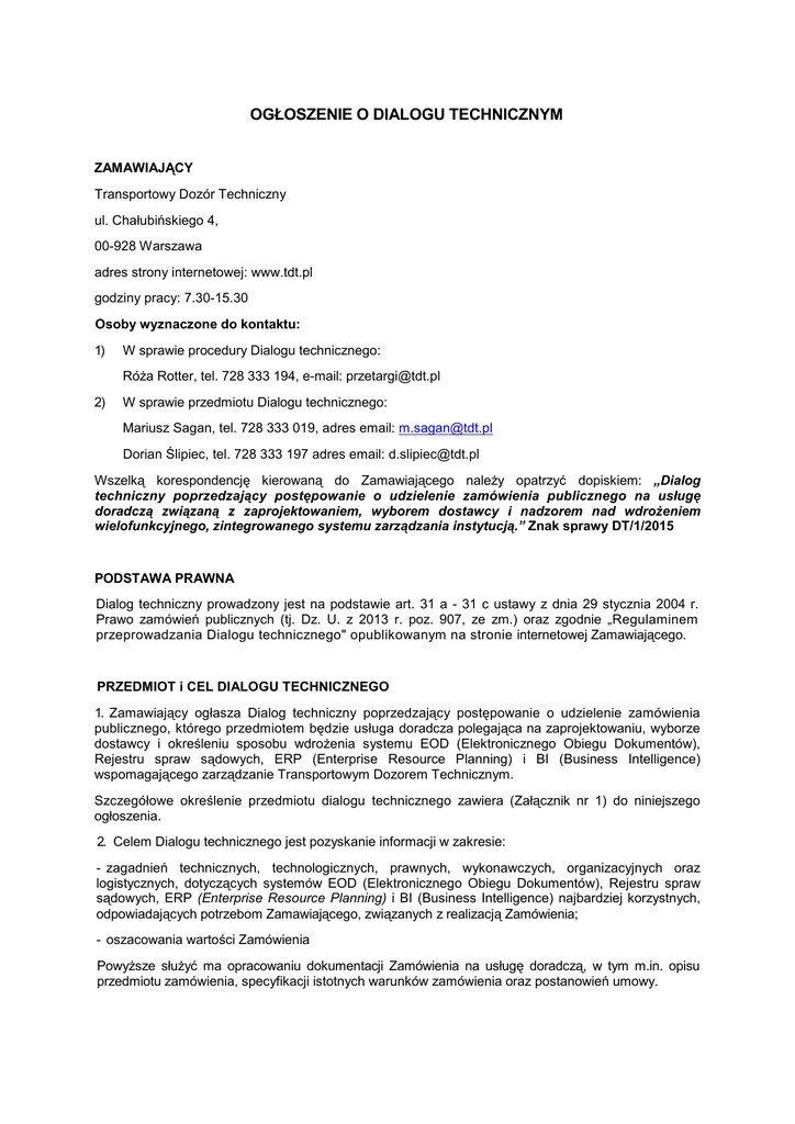 OGOSZENIE O DIALOGU TECHNICZNYM