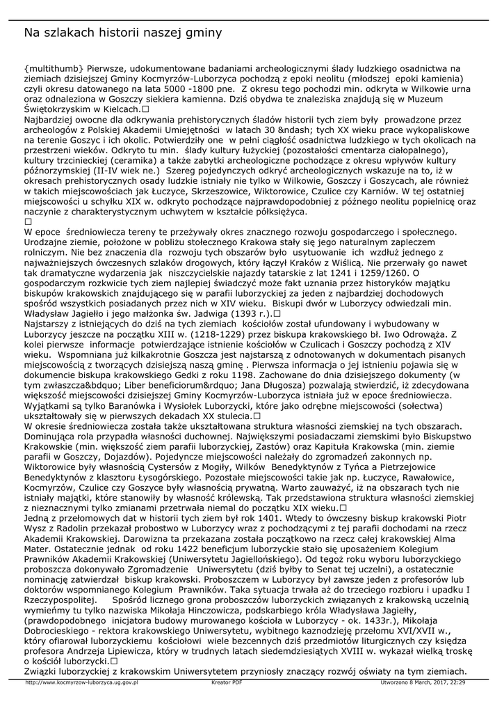 Źródła drukowane i opracowania ( wybór) : http://www.kocmyrzow-luborzyca.ug.gov.pl