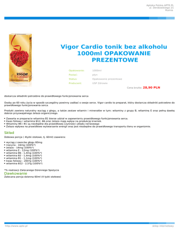 Vigor Cardio tonik bez alkoholu 1000ml OPAKOWANIE
