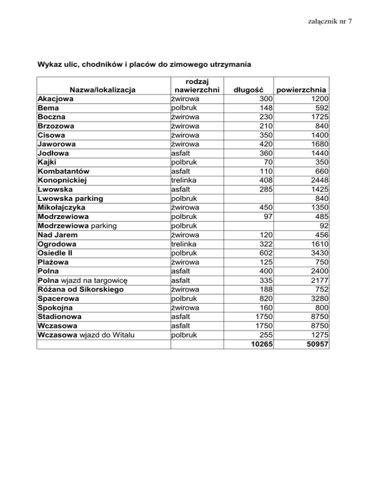 załącznik nr 7 Wykaz ulic, chodników i placów do zimowego