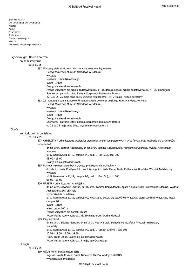 25 maja (sobota) - Bałtycki Festiwal Nauki