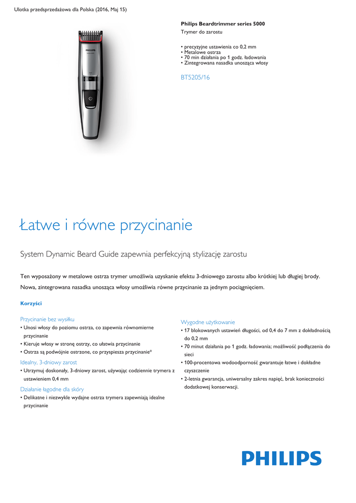 Product Leaflet: Trymer do zarostu z precyzyjnymi
