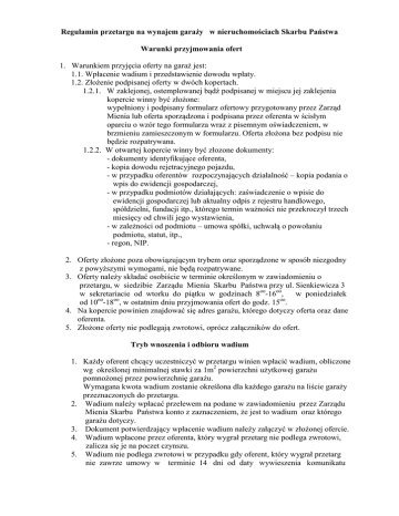 Regulamin przetargu na wynajem garazy w nieruchomoyciach