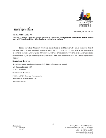 wynik ponowny - Zarząd Inwestycji Miejskich