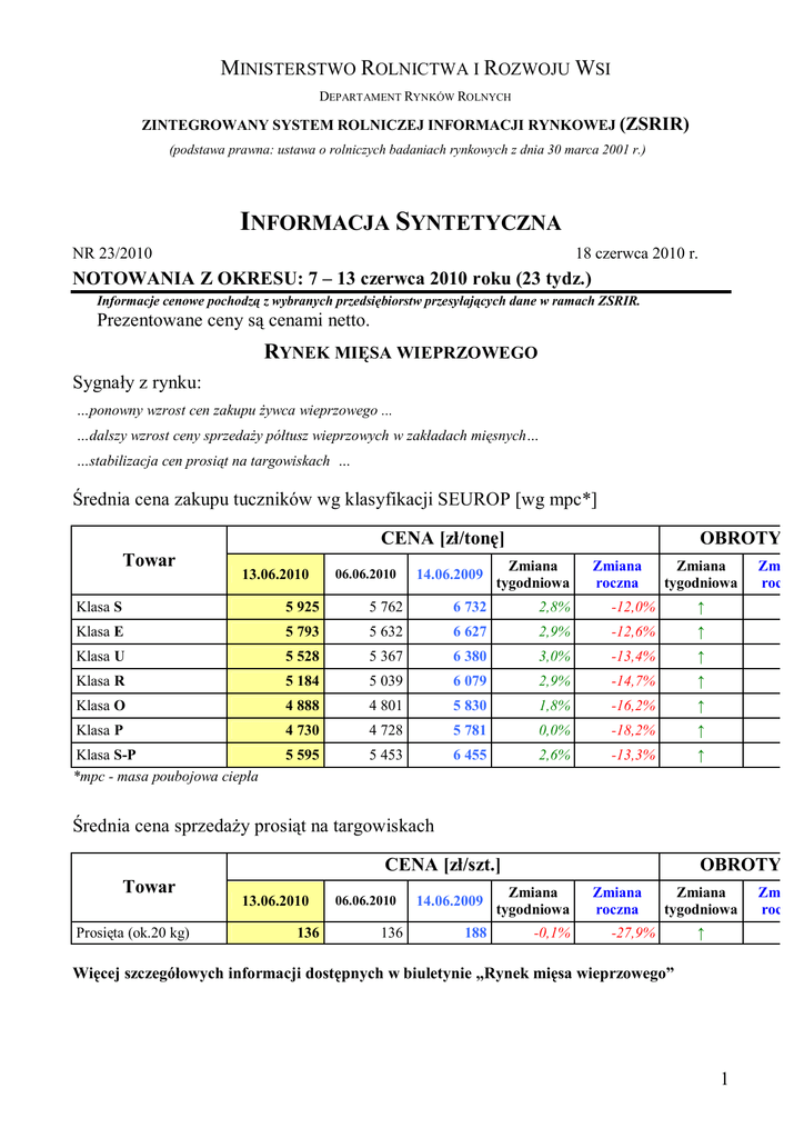informacja syntetyczna - Ministerstwo Rolnictwa i Rozwoju Wsi