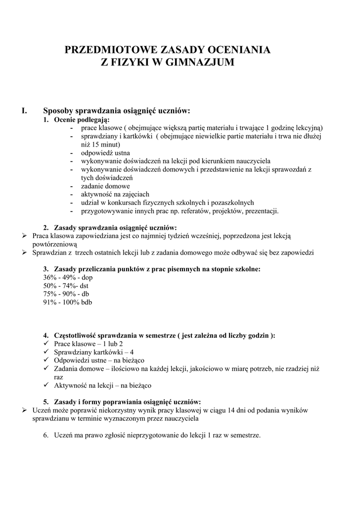 przedmiotowe zasady oceniania z fizyki w gimnazjum
