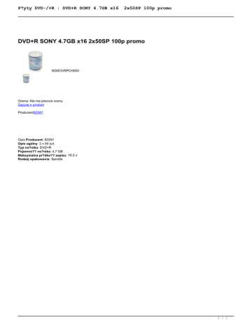 Płyty DVD-/+R : DVD+R SONY 4.7GB x16 2x50SP 100p promo