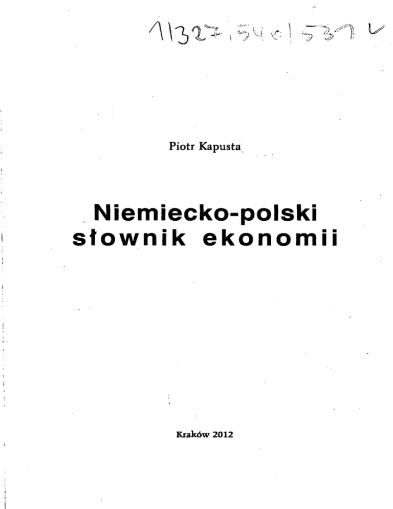 Piotr Kapusta Niemiecko-polski słownik ekonomii Kraków 2012