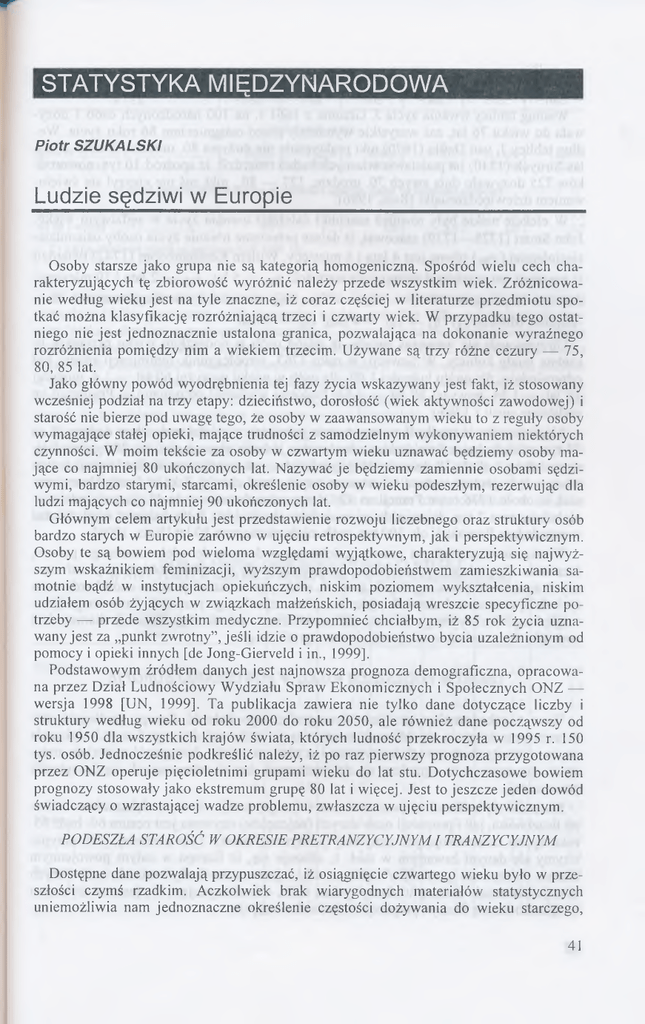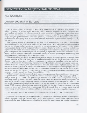 STATYSTYKA MIĘDZYNARODOWA Ludzie sędziwi w Europie