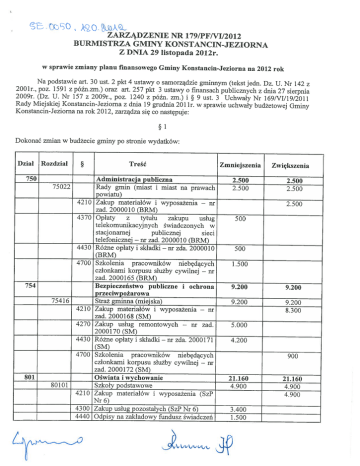 ZARZĄDZENIE NR 179JPF/y112012 BURMISTRZA GMINY