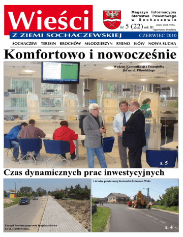 www.powiat.sochaczew.pl Piaseczno zakończyło projekt Starosta sochaczewski Tadeusz Koryś, Przewodniczący Rady Powiatu Andrzej Grabarek i dyrektor Wydziału Promocji, Kultury, Sportu i Turystyki Marcin Podsędek na zaproszenie starosty piaseczyńskiego uczestniczyli 13 maja w Piasecznie w uroczystym zakończeniu projektu „Powiat Piaseczyński Stolicą Kulturalną Mazowsza 2009”. W programie znalazły się m.in. występy chórów liturgicznego i szkolnego, teatru tańca z Piaseczna, dziecięcego Zespołu Tańca Ludowego z Góry Kalwarii. Goście obejrzeli również film będący podsumowaniem rocznej pracy kulturalnej wielu instytucji, ośrodków kultury, szkół i stowarzyszeń uczestniczących w realizacji projektu. Na koniec zebrani wysłuchali koncertu „Wielkie Dzieła Mistrzów Opery”. Miłym akcentem uroczystości było zaproszenie gospodarzy do odwiedzenia w tym roku powiatu sochaczewskiego, który to dzierży zaszczytny tytuł Stolicy Kulturalnej Mazowsza 2010. Starosta sochaczewski Tadeusz Koryś przywiózł ze sobą symboliczny klucz, który starosta piaseczyński Jan Dąbek przekazał powiatowi sochaczewskiemu podczas inauguracji projektu „Powiat Sochaczewski Stolicą Kulturalną Mazowsza 2010”, a która miała miejsce 22 lutego w brochowskiej bazylice. Podczas uroczystości w Piasecznie nie zabrakło podziękowań i gratulacji. - Doceniając ogrom wykonanej pracy i włożonego trudu przez samorząd powiatu piaseczyńskiego oraz jednostki i instytucje z nim współpracujące przy realizacji Stolicy Kulturalnej Mazowsza gratuluję wszystkim, którzy pracowali przy projekcie i życzę, by kolejne tygodnie, miesiące i lata obfitowały w bogaty kalendarz imprez odbywających się na terenie Państwa powiatu. Dziś Powiat Sochaczewski stoi przed podobnym wyzwaniem. Mamy nadzieję dostarczać niepowtarzalnych przeżyć kulturalnych, które na długo pozostaną w pamięci, a tym samym sprawią, że Ziemia Sochaczewska będzie przez kolejne lata wizytówką Mazowsza. Dzięki wsparciu finansowemu z budżetu Województwa Mazowieckiego chcemy dostarczać przez cały rok sporą dawkę artystycznych, duchowych i kulturalnych przeżyć – mówił podczas uroczystości starosta Tadeusz Koryś. Powiatowe ćwiczenie bojowe W dniach 24-25 czerwca 2010 roku na terenie powiatu sochaczewskiego odbędzie się powiatowe ćwiczenie obronne ,,BZURA 2010” na temat: ,,Osiągania wyższych stanów gotowości obronnej oraz realizacji przedsięwzięć wynikających z planów operacyjnych funkcjonowania powiatu i gmin w warunkach zewnętrznego zagrożenia bezpieczeństwa państwa i w czasie wojny oraz w czasie wystąpienia sytuacji kryzysowej na terenie powiatu sochaczewskiego”. W ćwiczeniu udział wezmą: Starostwo Powiatowe w Sochaczewie, Wojskowa Komenda Uzupełnień w Warszawie-Ochocie, Komenda Powiatowa Państwowej Straży Pożarnej, Komenda Powiatowa Policji, Urząd Miasta Sochaczew, Urząd Gminy Sochaczew, Urząd Gminy Teresin, Urząd Gminy Rybno, Urząd Gminy Iłów, Powiatowa Stacja Sanitarno-Epidemiologiczna, Powiatowy Inspektorat Weterynaryjny, Powiatowy Inspektorat Nadzoru Budowlanego, Szpitalny Oddział Ratunkowy wraz Rajd rodzinny rusza 26 czerwca XI Rodzinny Rajd Rowerowy po Powiecie Sochaczewskim im. T. Krawczyka z zaplanowany na sobotę 29 maja 2010 r. który miał rozpocząć się o godz. 9.00 na Placu Kościuszki z przyczyn technicznych nie odbył się. Do Starostwa Powiatowego w Sochaczewie wpłynęło pismo Wojewody Mazowieckiego dotyczące odwołania zaplanowanych imprez masowych, których Rajd odbędzie się 26 czerwca, w niezmienionych godzinach i trasie. Osoby, które były już zapisane na rowerowy rajd rodzinny, a chcą wziąć udział w najbliższym proszone są o potwierdzenie udziału pod numerem telefonu 864 18 30, 605 045 731 w godzinach 9.00-15.00 lub osobiście do 22 czerwca. Nie trzeba wypełniać ponownie formularza zgłoszeniowego. z Zespołami Wyjazdowymi oraz Wydział Bezpieczeństwa i Zarządzania Kryzysowego Mazowieckiego Urzędu Wojewódzkiego w Warszawie. W związku z powyższym informujemy Państwa iż w tych dniach mogą wystąpić zakłócenia w ruchu drogowym w Sochaczewie. W trakcie epizodów praktycznych powiatowe inspekcje, służby i straże będą wykonywać czynności według wymaganych procedur, dlatego podczas ćwiczeń praktycznych używane będą sygnały alarmowe. Serdecznie Państwa przepraszamy za ewentualne wynikłe z tego faktu utrudnienia i prosimy o wyrozumiałość. organizacja zamierzona była na terenach zagrożonych zalaniem. W związku ze skierowaniem służb policyjnych w te rejony, policja nie była w stanie zabezpieczyć rajdu rowerowego po powiecie sochaczewskim. Wydawca: Starostwo Powiatowe w Sochaczewie Redagują: Anna Syperek – redaktor prowadzący ([email protected]), Marcin Podsędek – koordynator z ramienia Wydawcy, Agnieszka Krawczyk, Ryszard Kłonowski Redakcja: Wydział Promocji, Kultury, Sportu i Turystyki, ul. M.J. Piłsudskiego 69, 96-500 Sochaczew, tel. 046 864-18-33, 864-18-30, e-mail: [email protected] Drukarnia: Wydawnictwo Ojców Franciszkanów Niepokalanów, Paprotnia ul. M. Kolbego 5, 96-515 Teresin, tel. 046 864-22-08, fax 861-37-59, e-mail: [email protected] Redakcja nie zwraca materiałów nie zamówionych oraz zastrzega sobie prawo skracania i redakcyjnego opracowania tekstów. 2 czerwiec 2010 luty 2008 www.powiat.sochaczew.pl Woda nas oszczędziła Sytuacja wydaje się stabilizować na Wiśle, choć trudno określić na jak długo, bo synoptycy zapowiadają na Mazowszu kolejne opady deszczu. W powiecie sochaczewskim nadal obowiązuje alarm powodziowy oraz na terenie miasta stan pogotowia przeciwpowodziowego – taki stan obowiązywał jeszcze w poniedziałek, 14 czerwca, a który wprowadzono 21 maja. Działania przeciwpowodziowe realizowane na terenie powiatu sochaczewskiego w okresie maj/czerwiec rozpoczęły się 20 maja wprowadzeniem pogotowania przeciwpowodziowego na terenie gmin: I