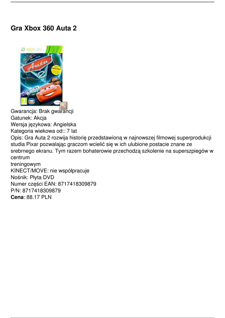 Gra Xbox 360 Auta 2