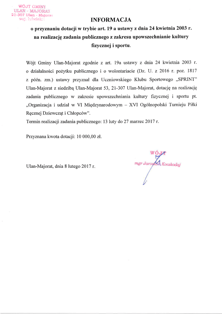 Ulan-Majorat, dnia 8 lutego 2017 r.