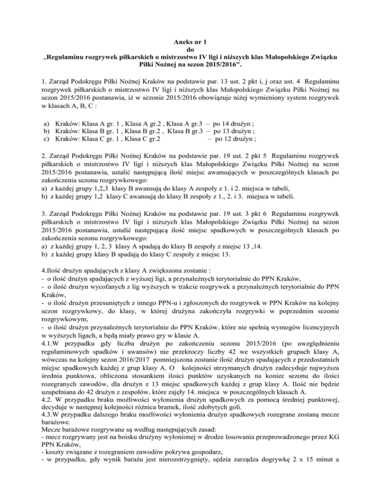 Aneks nr 1 do - Podokręg Piłki Nożnej Kraków