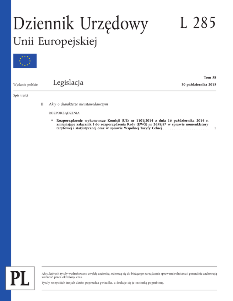 Rozporządzenie wykonawcze Komisji (UE) nr 1101/2014 z dnia 16 października 2014 r.