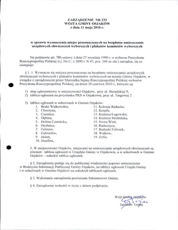 2. \V miejscowości Osjaków, miejscami na umieszczanie urzędo\\)'ch obwieszczen są
