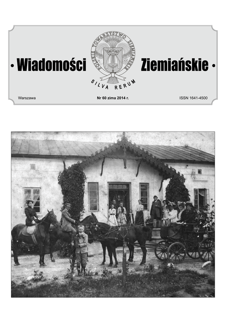 Warszawa Nr 60 zima 2014 r. ISSN 1641-4500 W numerze: Z NASZEJ PRZESZŁOŚCI Renata Jezierska, Wizyta ostatniego cara Rosji w Warszawie opisana w dzienniku Cypriana Adama Apanowicza . . . . . . . . . . . . . . . . . . . . . . . . . . . . . . . . . . . . . . . . . . . . . . . . . . . Marta Czerniewicz, Praktyki rolnicze w majątkach . . . . . . . . . . . . . . . . . . . . . . . . . . . . . . . . . . . . WYPĘDZENI Zborczyce, pow. Bochnia, właściciel Stanisław Günther-Olearski . . . . . . . . . . . . . . . . . . . . . . . . . . . . Garnek, pow. Radomsko, właścicielka Maria Bilowicz . . . . . . . . . . . . . . . . . . . . . . . . . . . . . . . . . . Kotfin, pow. Opoczno, właściciel Maria Bauerfeind . . . . . . . . . . . . . . . . . . . . . . . . . . . . . . . . . . . . Kaczkowizna, pow. Kutno, właściciel Kazimierz Gliński [zginął w Katyniu] . . . . . . . . . . . . . . . . . . . Łopiennik, pow. Puławy, właścicielka Irena Kochanowska . . . . . . . . . . . . . . . . . . . . . . . . . . . . . . . . Wspomnienia z Bratkówki k. Krosna i z Siedlisk, Franciszek Starowieyski . . . . . . . . . . . . . . . . . . . . Korczów w Ziemi Radomskiej, właścicielka Maria Rutkowska . . . . . . . . . . . . . . . . . . . . . . . . . . . . Powrót i wygnanie – Helena z Kaczorowskich Daszkiewicz z Kopydłowa . . . . . . . . . . . . . . . . . . . . . Anna Łoś, Marek Łoś, Raz jeszcze o Reformie Rolnej i protokołach przejęcia majątków ziemskich . . . . . 2 9 11 12 12 13 13 14 14 15 16 PAŁACE i DWORY Piotr Szymon Łoś, Między mitem Podola a realnym Mazowszem – z wizytą u Sobańskich w Guzowie . . . . 21 ZIEMIAŃSKIE BIOGRAFIE Liliana Narkowicz, Wyjść z cienia Ordonki, szkic o hrabim Michale Zygmuncie Tyszkiewiczu . . . . . . 29 Jerzy Stępniewicz, Ojciec – Mieczysław Stępniewicz herbu Nałęcz . . . . . . . . . . . . . . . . . . . . . . . . . . 45 Maria Wydżga-Niklewiczowa, Fragment wspomnień o Stanisławie Fudakowskim . . . . . . . . . . . . . . 57 ZIEMIANIE W PORTRECIE I FOTOGRAFII Daniel Kamiński, Broniszowie herbu Wieniawa . . . . . . . . . . . . . . . . . . . . . . . . . . . . . . . . . . . . . 60 WYDARZENIA, SESJE, WYSTAWY Ziemianie i winnice . . . . . . . . . . . . . . . . . . . . . . . . . . . . . . . . . . . . . . . . . . . . . . . . . . . . . . . . . . Muzea-rezydencje w Polsce – dziesięć lat później . . . . . . . . . . . . . . . . . . . . . . . . . . . . . . . . . . . . . . . C.d. o Kozłówce – Rozpoczynają się zdjęcia do filmu „Shandaar” . . . . . . . . . . . . . . . . . . . . . . . . . . . Konkurs o Krasnobrodzie . . . . . . . . . . . . . . . . . . . . . . . . . . . . . . . . . . . . . . . . . . . . . . . . . . . . . . . 600 lat miasta Głębokie w dawnym księstwie połockim . . . . . . . . . . . . . . . . . . . . . . . . . . . . . . . . . Nie tylko galeria sztuki i wiekowe dęby w Rogalinie, ale również muzyka myśliwska i ptaki łowcze . . . . . Uroczystości w dworze w Żelaznej . . . . . . . . . . . . . . . . . . . . . . . . . . . . . . . . . . . . . . . . . . . . . . . . . Maciej Rydel odznaczony Krzyżem Kawalerskim Orderu Odrodzenia Polski . . . . . . . . . . . . . . . . . . . . Społeczne skutki przekształceń własnościowych w Polsce (1944-1956) . . . . . . . . . . . . . . . . . . . . . . . . 66 70 71 71 72 77 78 80 80 INFORMACJE I PORADY PRAWNE Maciej Obrębski radzi: Wątpliwa konieczność zaprzeczania niemieckiego pochodzenia byłych właścicieli ziemskich . . . . . . . . . . . . . . . . . . . . . . . . . . . . . . . . . . . . . . . . . . . . . . . . . . . . . . . . . 81 Z ŻYCIA PTZ Plon naszych pielgrzymek z ubiegłych czasów . . . . . . . . . . . . . . . . . . . . . . . . . . . . . . . . . . . . . . . . . . 83 Wycieczka do Doliny Baryczy Wielkopolskiego Oddz. PTZ . . . . . . . . . . . . . . . . . . . . . . . . . . . . . . . . 86 PUBLIKACJE – OFERTA DLA CZYTELNIKÓW . . . . . . . . . . . . . . . . . . . . . . . . . . . . 87 LIST DO REDAKCJI, SPROSTOWANIA, DROBIAZGI . . . . . . . . . . . . . . . . . . . . . . 92