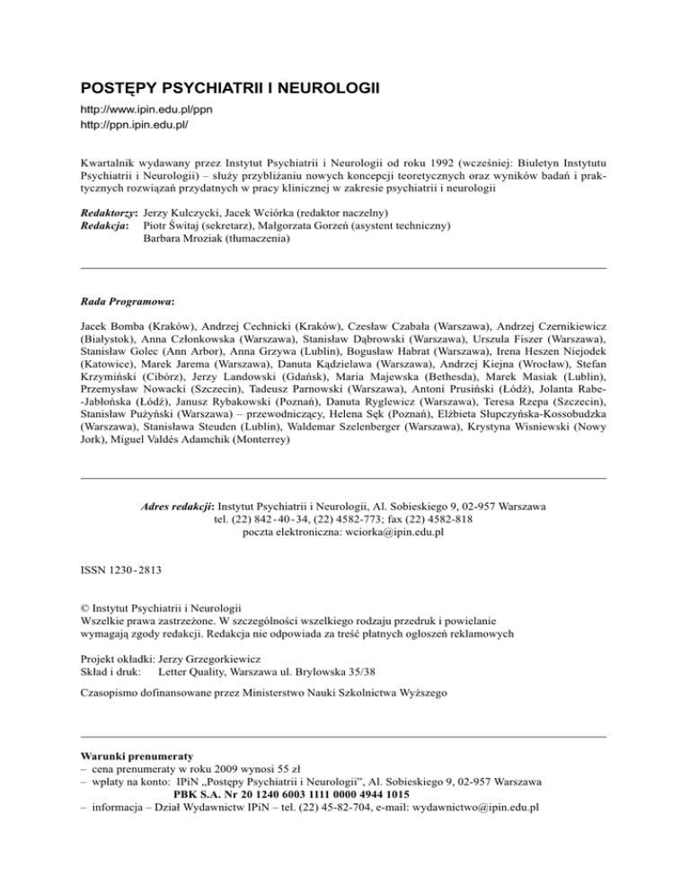 Str redakcyjna - Postępy Psychiatrii i Neurologii