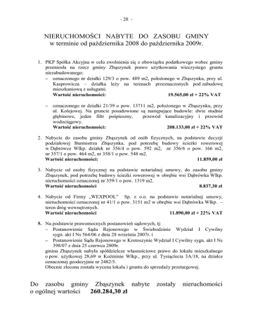NIERUCHOMOŚCI NABYTE DO ZASOBU GMINY w
