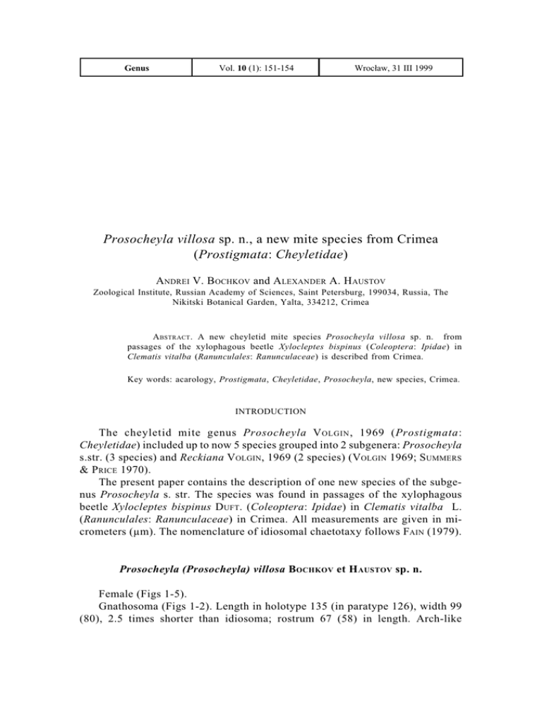 Prosocheyla villosa sp. n., a new mite species from Crimea