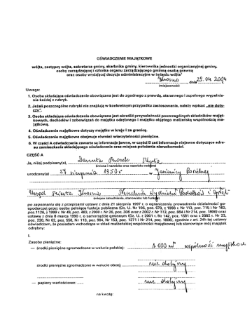 4. Oœwiadczeniemaj¹tkowe dotyczy maj..tku w kraiu i za granic¹.