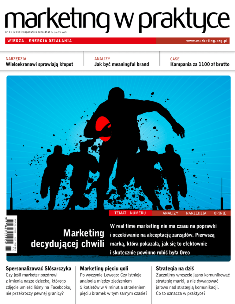 nr 11 (213) listopad 2015 cena 45 zł (w tym 5% VAT) W IEDZ A – ENERGI A DZI AŁ ANI A NARZĘDZIA Wieloekranowi sprawiają kłopot ANALIZY Jak być meaningful brand TEMAT TEMAT NUMERU NUMERU Marketing decydującej chwili Spersonalizować Slósarczyka Czy jeśli marketer pozdrowi z imienia nasze dziecko, którego zdjęcie umieściliśmy na Facebooku, nie przekroczy pewnej granicy? www.marketing.org.pl CASE Kampania za 1100 zł brutto ANALIZY NARZĘDZIA OPINIE W real time marketing nie ma czasu na poprawki i oczekiwanie na akceptację zarządów. Pierwszą marką, która pokazała, jak się to efektownie i skutecznie powinno robić była Oreo Marketing pięciu goli Po wyczynie Lewego: Czy istnieje analogia między zjedzeniem 5 kotletów w 9 minut a strzeleniem pięciu bramek w tym samym czasie? Strategia na dziś Zacznijmy wreszcie jasno komunikować strategię marki, a nie dywagować jałowo nad strategią komunikacji. Co to oznacza w praktyce? marketing w praktyce SHAKEHANDS/ TELEPIZZA POLSKA. DOCENIONA ODWAGA TELEPIZZY CASE STUDY Telepizza Polska, wychodząc naprzeciw oczekiwaniom konsumentów aktywnych w mediach społecznościowych, wprowadziła możliwość zamawiania pizzy jednym kliknięciem przez Twittera. To element nowej, innowacyjnej platformy Click & Pizza, która umożliwia zamówienie przysmaku w bardzo prosty sposób. tekst: Anna Bober, PR manager Brand Support Sp. z o.o. Szymon Ślipko, CEO/strategy director, SHAKE HANDS D oświadczeni marketerzy wiedzą, że pojawienie się marki w nowych kanałach komunikacji oznacza dotarcie do większej liczby konsumen‑ tów, co w pośredni sposób przekłada się na wzrost biznesu. Marki obserwują rozwój mediów społecznościowych i już dawno wyszły poza klasyczny fan page na Facebooku. Naturalnym posunięciem jest szukanie nowych rozwiązań na pro‑ mocję swojego biznesu, tym bardziej że jest w czym wybierać. Po dużych wzro‑ stach w kilku minionych latach serwis społecznościowy Twitter ustabilizował się na poziomie około 3,2 mln użytkow‑ ników miesięcznie. Stał się tym samym narzędziem skondensowanej komunikacji w 140 znakach. I choć pojawiają się głosy, że właściciele Twittera planują zlikwido‑ wać limit znaków we wpisach, nic jeszcze nie jest przesądzone. Click & Pizza z hiszpańskimi korzeniami Właśnie skondensowanie aktywności związanych z procesem zamówienia piz‑ zy stało się inspiracją do opracowania platformy Click & Pizza. Założeniem było stworzenie narzędzia dla konsumentów, które umożliwiałoby zamówienie pizzy w możliwie najprostszy sposób. W Hisz‑ panii, ojczyźnie Telepizzy, zostało to prze‑ łożone na trzy kanały komunikacji z klien‑ tami: zamawianie pizzy przez Twittera, „hungry button” (magnes na lodówkę), którego naciśnięcie kierowało sygnał z za‑ mówieniem do najbliższego lokalu oraz aplikacja na smartwatch, której instala‑ cja dawała szansę na zamówienie pizzy 8 listopad 2015 83 ShakeHands/ Telepizza Polska. Doceniona odwaga Telepizzy marketing w praktyce CASE STUDY SHAKEHANDS/ TELEPIZZA POLSKA. DOCENIONA ODWAGA TELEPIZZY listopad 2015 84 8 jednym kliknięciem. Takie rozwiązania niewątpliwie stawiają hiszpańską Telepizzę w gronie innowacyjnych marek na polu mobilnych i socialmediowych rozwią‑ zań. Dołączenie do tego grona, to także długofalowa ambicja Telepizza Polska, która chce być postrzegana jaka marka nowoczesna, jak najbliżej konsumentów, oferująca rozwiązania adekwatne do ak‑ tualnych trendów. Przeniesienie pomysłu na nasz rynek wymagało dostosowania koncepcji do pol‑ skich konsumentów, ich preferencji oraz narzędzi, z których korzystają. Natural‑ nym wyborem był Twitter, którego in‑ frastruktura umożliwia zamówienia pizzy jednym kliknięciem, a popularność ser‑ wisu dawała akcji szansę na powodzenie. W czasach multitaskingu i rozprosze‑ nia uwagi konsumentów Click & Pizza jest rozwiązaniem, które pozwala bez odrywania się od innych zajęć zamówić ulubione danie. Z rozwiązania takiego może skorzystać społecznościowy „geek”, ale także zwykły użytkownik Twittera, dzięki czemu może zaoszczędzić czas czy np. uratować głodnych kolegów, którzy niespodziewanie wpadli na mecz. Jak się zamawia z hashtagiem Mechanizm zamawiania pizzy jest nie‑ zwykle prosty. Wystarczy połączyć konto w serwisie Twitter ze swoim kontem w za‑ mówieniach online Telepizza, a następnie wysłać tweeta z hashtagiem #mojaulubio‑ na, oznaczając przy tym konto @Telepiz‑ za_pl. Złożone zamówienie uruchamia automatycznie zestaw, który wcześniej skonfigurowaliśmy jako ulubiony, dzięki czemu pizza ta trafia w możliwie najkrót‑ szym czasie pod podany adres. Zamówie‑ nie można komponować ze wszystkich produktów dostępnych w sklepie online. Telepizza Polska przygotowała specjalną ofertę cenową dla klientów składających zamówienie przez platformę Click & Pizza. – Wierzymy, że zamawianie przez jed‑ nego tweeta będzie odpowiedzią na po‑ marketing w praktyce SHAKEHANDS/ TELEPIZZA POLSKA. DOCENIONA ODWAGA TELEPIZZY CASE STUDY trzeby coraz bardziej wymagających klien‑ tów. Chcemy być łatwo dostępni wszędzie i dlatego stale podążamy za dynamicz‑ nie zmieniającymi się potrzebami rynku – mówi Ewa Minda-Korczak, marketing manager Telepizza Polska. Pizza dla influencerów Rozwiązanie jest absolutnie nowator‑ skie – to pierwsza taka oferta w Polsce. W chwili obecnej ponad 30 proc. wszyst‑ kich zamówień z dostawą do domu czy biura pochodzi z internetu. Za pośrednic‑ twem urządzeń mobilnych zamawia już prawie 20 proc. ze wszystkich użytkow‑ ników sklepu online telepizza.pl. Wprowadzając nową usługę, Telepizza zdecydowała się na poddanie jej ocenie tym, którzy w mediach społecznościowych czują się jak ryby w wodzie. Stwierdzili‑ śmy, że ich reakcje to najlepszy barometr szans powodzenia usługi. W tym 