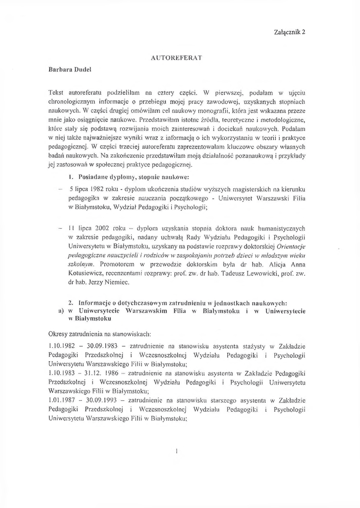 1.10. 1993 - 31.01.2003 - zatrudnienie na stanowisku wykładowcy w Zakładzie Pedagogiki
