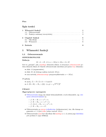 Odwzorowania s¡ zawsze jednokrotne (jednoznaczne), tzn. dla danego argumentu