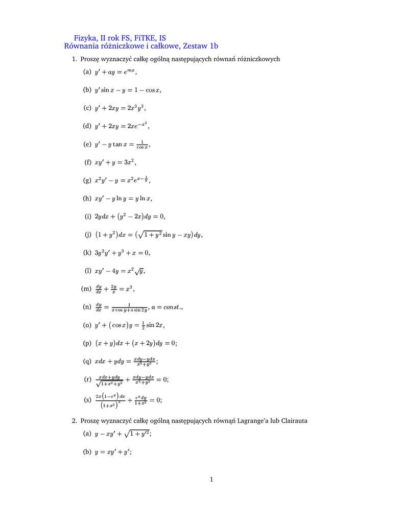 Równania różniczkowe i całkowe, Zestaw 1b