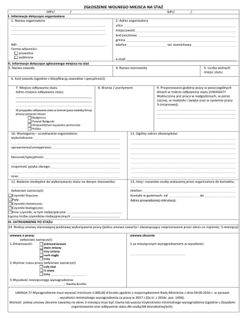 ZGŁOSZENIE WOLNEGO MIEJSCA NA STAŻ