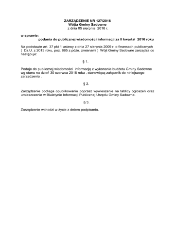 ZARZĄDZENIE NR 127/2016 Wójta Gminy Sadowne z dnia 05