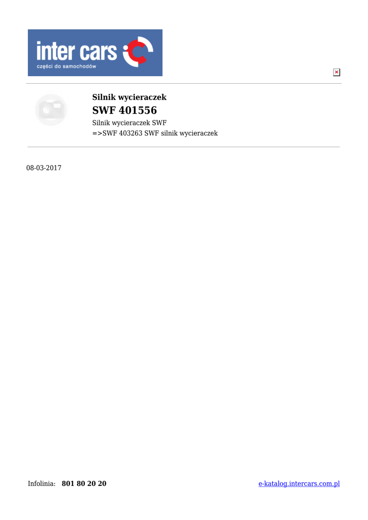Silnik wycieraczek SWF 401556 Silnik wycieraczek SWF =>SWF 403263 SWF silnik wycieraczek 08-03-2017 Infolinia: 801 80 20 20 e-katalog.intercars.com.pl