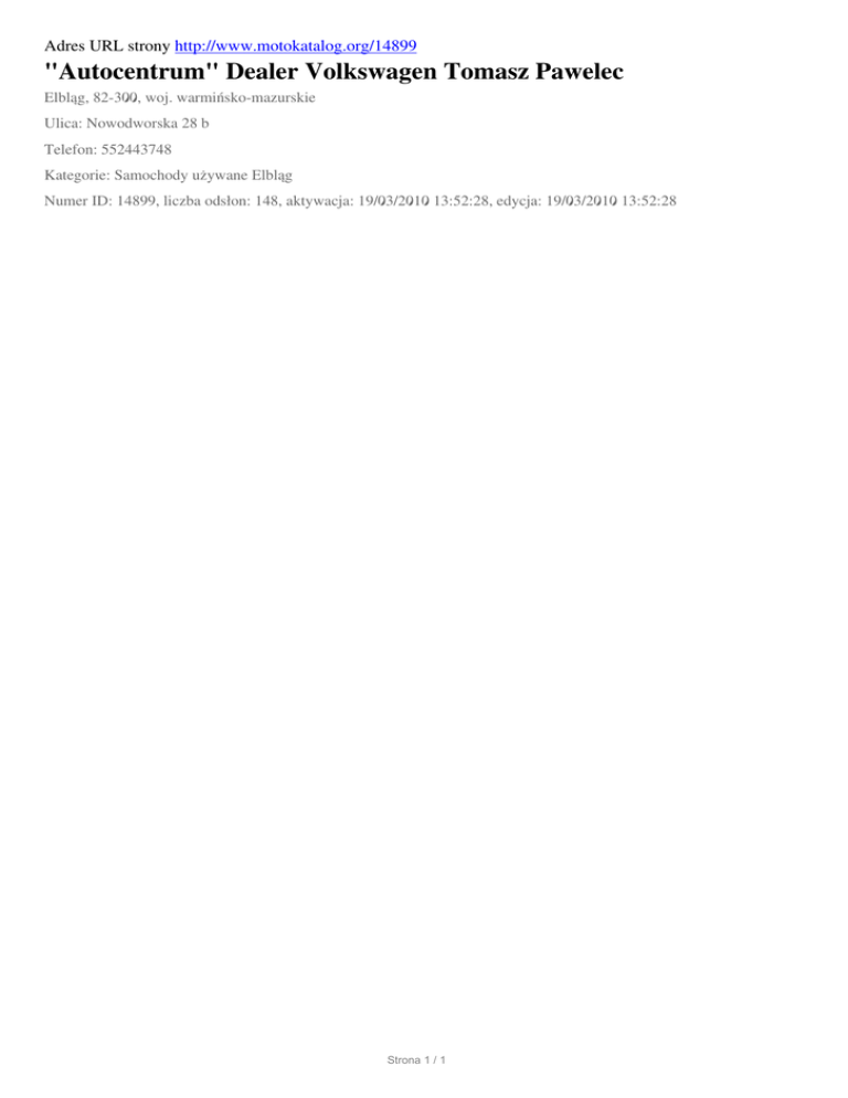"Autocentrum" Dealer Volkswagen Tomasz Pawelec, Elblag