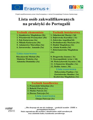 Lista osób zakwalifikowanych na praktyki do Portugalii Technik