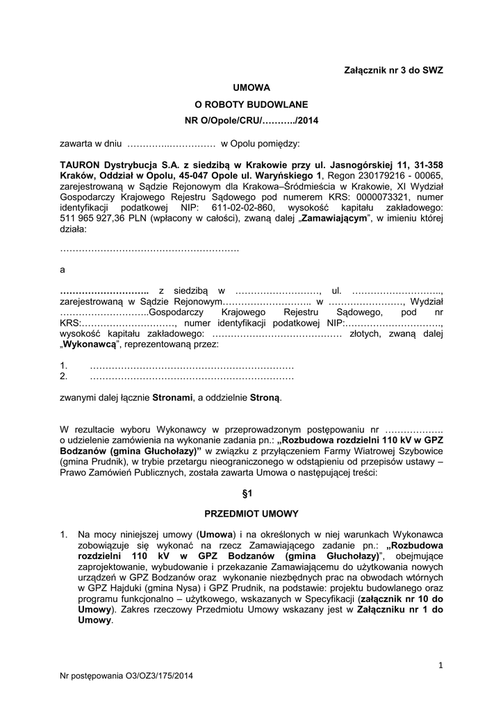 Załącznik nr 4 ISTOTNE POSTANOWIENIA UMOWY 1. Przedmiotem