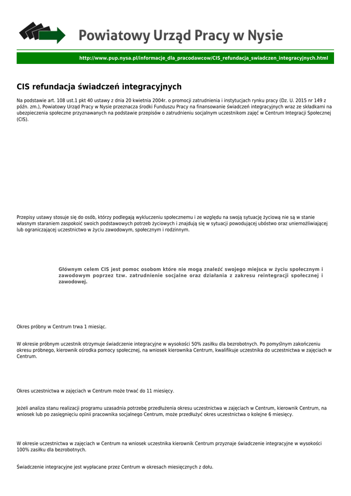 CIS refundacja świadczeń integracyjnych