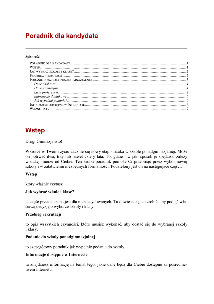 Poradnik dla kandydata do szkoły ponadgimnazjalnej 2010