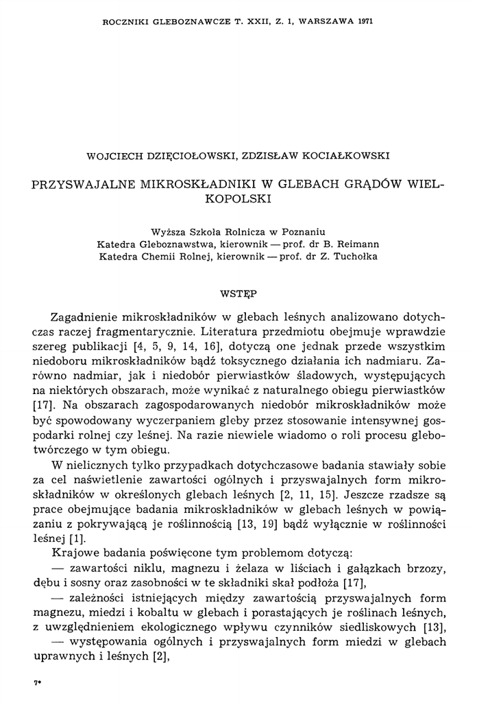 [3] D z i ę c i o ł o w s k i W.: Gleby grądów Wielkopolski. Rocz. WSR Pozn., t. 31,
