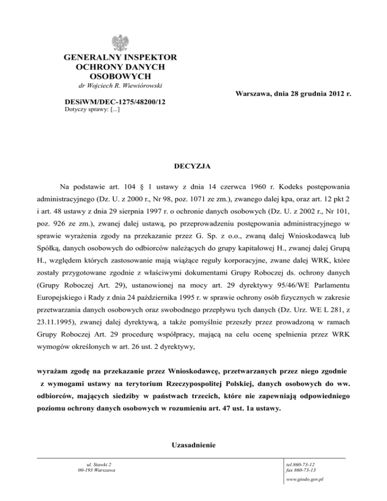 generalny inspektor ochrony danych osobowych