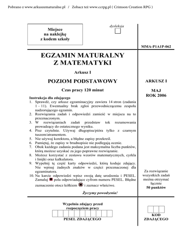 Pobrano z www.arkuszematuralne.pl / Zobacz też www.ccrpg.pl ( Crimson Creation RPG )