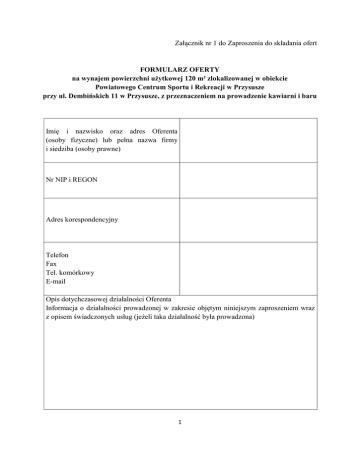 Formularz oferty - Powiatowe Centrum Sportu i Rekreacji w Przysusze