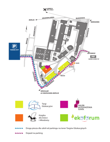 ORZESZKOWEJ GMACH ADMIN. Targi Edukacyjne Książka dla Dzieci i Młodzieży Droga piesza dla szkół od parkingu na teren Targów Edukacyjnych Dojazd na parking