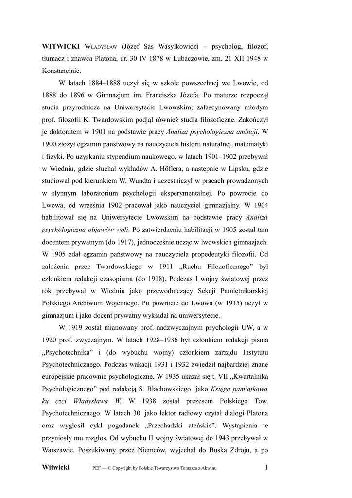 WITWICKI WŁADYSŁAW - Polskie Towarzystwo Tomasza z Akwinu